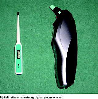 Kroppens kernetemperatur og ændringer i denne kan enten måles direkte med en invasiv metode (i arteria pulmonalis, i blæren eller i øsofagus) eller estimeres ud fra en ikkeinvasiv målemetode (i øret, munden, aksillen eller over panden). I Danmark anvendes rektal- eller øretemperaturmåling i 95% af tilfældene [2], hvorfor denne kliniske procedure primært vil omhandle disse to metoder. Temperaturmåling via et Swan Ganz-kateter i arteria pulmonalis anses for at være den mest præcise bestemmelse af kroppens kernetemperatur. Pandetermometret er en relativt ny målemetode, hvor kernetemperaturen estimeres ud fra hudtemperaturen ved arteria temporalis. I to nyere skandinaviske studier kunne man ikke anbefale metoden [3, 4]. Mundhuletermometret har været vidt benyttet i de angelsaksiske lande og beskrives generelt som værende relativt pålideligt [5], men det benyttes yderst sjældent på danske hospitaler. Aksiltermometret anvendes stort set kun på enkelte børneafdelinger.