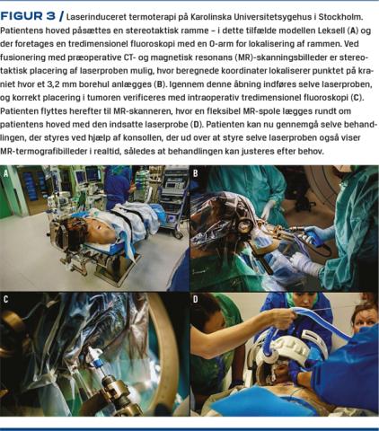 En lovende behandling er termoablation. Termoablation er en minimalt invasiv procedure, hvor en tynd nål bruges til varme- eller frysebehandling mhp. destruktion af tumorvæv [6]. Varmebehandling er for nylig indført som behandlingstilbud til udvalgte patienter med hjernetumorer på Karolinska Universitetssygehuset i Stockholm som det første sted i Norden [7], og den norske hjernetumorforening har rejst krav om, at behandlingen indføres i Norge. Teknikken er endnu ikke indført i Danmark. Denne artikel har til formål at beskrive behandlingsmetoden og den nuværende evidens på området.