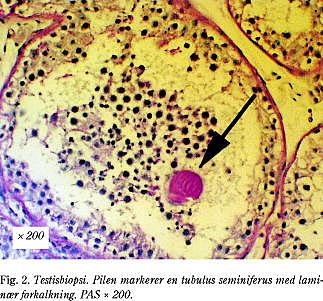 Vi fandt i vores materiale, at spermatogenesen var påvirket hos fire ud af ni patienter. Dette er tidligere beskrevet (7) og peger på, at TM kan skyldes en tidlig påvirkning af testisvævet, som også kan påvirke spermatogenesen.