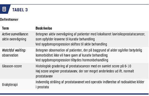 Mest kontroversielt er TRT-behandling af mænd, der har PCa og er under active surveillance eller watchful waiting (Tabel 3). Bekymringen for, at TRT kan være skadeligt ifm. aktiv PCa, skyldes, at testosteronmetabolitten, dihydrotestosteron, fungerer som vækstfaktor for prostataceller. Dette har afstedkommet, at aktiv PCa i dag er en absolut kontraindikation for TRT, og der findes derfor meget få rapporterede tilfælde. Således er der i et studium fra 2011 beskrevet TRT-behandling af 13 mænd, der havde hypogonadisme og var under active surveillance for lokaliseret PCa. Mændene fik foretaget PSA-niveaumåling og rektaleksploration hver tredje måned og prostatabiopsi hvert år, og efter 30 måneders opfølgning fandt man ingen tumorprogression [22].