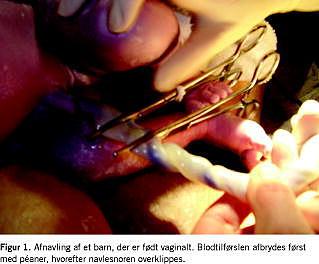 Efter fødslen afbrydes forbindelsen mellem barnet og moderkagen ved afnavlingen, som sker ved afklemning af navlesnoren med klemmer eller péaner før overklipning (Figur 1 ). Vi har fundet det vigtigt at gøre opmærksom på en række nyere randomiserede studier og metaanalyser, hvori man belyser fordelene for barnet ved sen afnavling.
