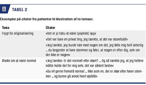 I en ny kvalitativ interviewundersøgelse, der blev foretaget efter etableringen af TOP, fremkom samme temaer som overfor nævnt, men personerne havde i disse interview også fokus på traumatiske oplevelser, som de havde haft under opvæksten, og som de tilskrev betydning for sårbarhed over for udvikling af psykose [21]. Yderligere fokuserede personerne på betydningen af den positive alliance, der opstod i forhold til personalet i opsporingsteamet, og den venlige, tillidsvækkende atmosfære, som det første møde foregik i. Personalets kendskab til de psykopatologiske oplevelser viste sig at være af væsentlig betydning. Personerne gav udtryk for, at de bedre kunne forstå den stillede diagnose og oplevede det som positivt – i modsætning til en frygt for stigmatisering (Tabel 2).