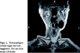 I. En 74-årig kvinde blev henvist til en øre-næse-hals-afdeling af egen otolog med parafaryngeal udfyldning og smerter i halsen. Symptomerne havde stået på i 3-4 måneder.
