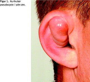 Aurikulær pseudocyste er en benign, ikkeinflammatorisk lidelse af ukendt genese. Den præsenterer sig som en asymptomatisk fluktuerende hævelse af den øvre anteriore del af det ydre øre enten i fossa triangularis eller scaphoidea anthelici, sjældent i cavum concha. Processen er oftest ensidig. Lidelsen er sjælden og rammer hyppigst unge mænd af asiatisk afstamning [1, 5]. På baggrund af de foreliggende sygehistorier diskuteres mulige ætiologiske faktorer og behandlingsregimer.
