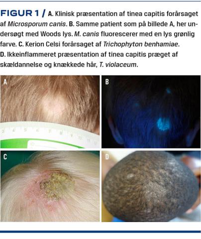 Tinea capitis (TC) er en svampeinfektion, der forekommer i hår og hårbund, primært hos børn [1]. Sygdommen kan forveksles med psoriasis og seboroisk eller atopisk dermatitis, da det kliniske billede præges af skældannelse og alopeci, som kan være både diffus og velafgrænset [2, 3]. Dertil kan der forekomme inflammation med rødme, infiltration og sjældnere sårdannelse [4]. Uden adækvat behandling er der risiko for permanent hårtab og yderligere smittespredning. Derfor er hurtig diagnostik og korrekt behandling væsentlig.