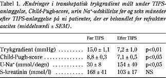 Øget portaltryk er en forudsætning for dannelse af hepatogen ascites, og TIPS-anlæggelse mindsker derfor ascitesdannelse (9). Ni af de ti patienter, alle med alkoholisk cirrose, havde på opgørelsestidspunktet været observeret i mere end seks måneder.