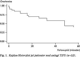 Overlevelsen opdelt efter indikationerne akut og elektiv TIPS var efter et år på henholdsvis 76% og 82%. I gruppen af patienter med refraktær ascites var der et dødsfald efter 18 måneder. Observationstiden var 0,5-51 måneder (median 32 måneder).