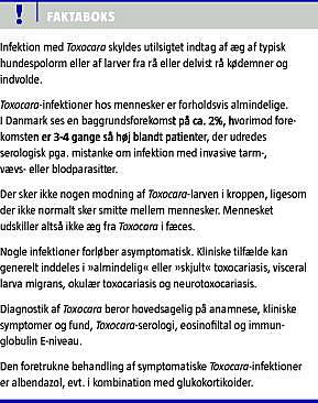 - Magnaval JF, Glickman LT. Management and treatment options for human toxocariasis. I: Smith HV, Holland CV (eds.) Toxocara: the enigmatic parasite. Oxfordshire, Storbritannien: CABI International, 2006:113-26.