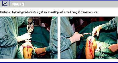 TKA var den første ortopædkirurgiske operationstype, hvor der blev udført randomiserede, kontrollerede undersøgelser af TXA som blodbesparende foranstaltning [12]. Siden har der været udført talrige studier, hvor man har fundet 18-70% signifikant reduktion i det samlede blodtab - dog med en betydelig lavere reduktion i transfusionsbehovet, nemlig 16-25% [7, 10]. Til gengæld har TXA ikke vist effekt på reduktion af det »skjulte« blodtab [11]. Et problem ved sammenligneligheden af studierne er den store variation af indgiftsdosis og administrationen i form af dosis og eventuel gentagelse af indgift. Effekten i forhold til placebo viste sig at være større ved doser over 30 mg/kg end ved mindre doser, og samtidig så man en tendens til, at gentagen dosis i forhold til enkeltdosis var mere effektivt [8, 12].
