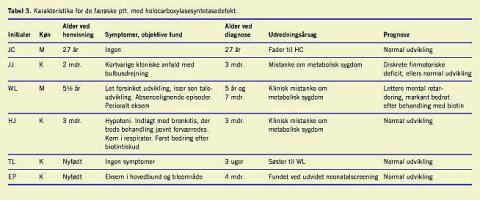 Det første barn med KTD blev diagnosticeret i 1995. En af dette barns søskende døde i 1989, og anamnestisk sandsynligvis fordi barnet havde KTD, og diagnosen er for nylig blevet mutationsverificeret ved undersøgelse af blod fra fenylketon-uri (PKU)-kort. Yderligere otte patienter er siden blevet diagnosticeret, et barn efter dets død (efter en dags sygdom, hvor barnet bl ev behandlet med pivampicillin [10, 11]. Alle otte patienter (fra tre forskellige familier) havde samme OCTN2-mutation N32S [10, 11]. Patienterne er nærmere beskrevet i Tabel 2.