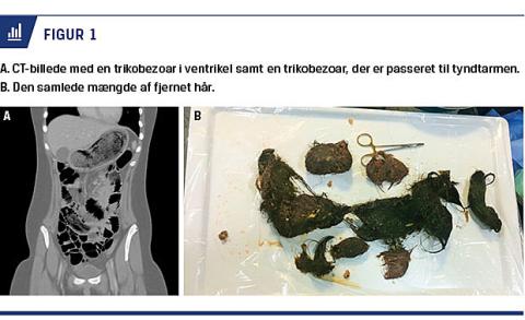 Trikotillomani er en psykiatrisk lidelse, hvor manglende impulskontrol og en midlertidig følelse af tilfredshed får patienten til at trække sit eget hår ud af hovedbunden. Lidelsens prævalens anslås til at være 1-3,5% [1] blandt børn og unge voksne, og ca. 30% af patienterne med trikotillomani praktiserer yderligere trikofagi, hvor det udtrukne hår spises. Hårets glatte overflade besværliggør passage ved normal peristaltik, og håret kan derfor ophobes i ventriklen med dannelse af trikobezoarer [2]. Sjældent kan bezoaren have udtrækning til tyndtarmen og kaldes da Rapunzels syndrom [1]. Patientgruppen er typisk børn og unge