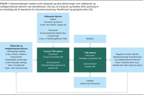 Følelsesmæssige tilstande som kedsomhed, vrede og anspændthed samt tankemønstre som »jeg er grim« og »jeg fortjener det« har betydning for hårplukningsadfærden hos personer med TTM [4, 8, 9]. Ofte rapporterer personer med TTM, at disse følelser og tanker kortvarigt aftager efter hårplukning, hvorved TTM-adfærd kommer til at regulere ubehagelige følelser eller giver lettelse [10, 11].