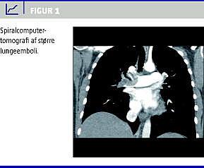 En 33-årig gravid kvinde fik en massiv lungeemboli i 29. uge. Diagnosen blev bekræftet med spiralcomputertomografi, og hun blev succesfuldt behandlet med recombinant tissue plasminogen activator og lavmolekylært heparin.