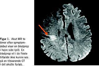 Der er flere mulige differentialdiagnoser til akut apopleksi (transitorisk cerebral iskæmi (TCI), migræne med aura, Todds parese eller pseudoapopleksi), som kun forløbet eller supplerende undersøgelser kan afsløre. Det største kliniske problem er dog, at debuttidspunktet for apopleksien ikke altid er let at fastlægge. Dette skyldes afasi, neglect eller bevidsthedsforstyrrelser hos den uobserverede patient, der lider af svær apopleksi og bliver fundet af arbejdskammerater eller pårørende, eller når apopleksien opstår under søvn. Nye magnetisk resonans (MR)-teknikker med diffusions- og perfusions-MR-skanning kan løse disse problemer, hvorved håbet er, at både effekten og sikkerheden under trombolysebehandling kan forbedres. Ved at benytte MR-teknikken (Figur 1) kan patienter udvælges på et patofysiologisk grundlag.