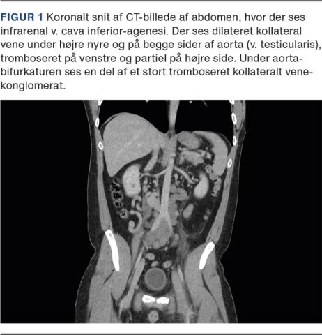 V. cava inferior-agenesi (VCIA) er en sjælden medfødt misdannelse med en estimeret prævalens på 0,0005-1% [1]. I alt 5% af alle dybe venetromboser (DVT) hos personer under 30 år kan formentlig henføres til VCIA [2].