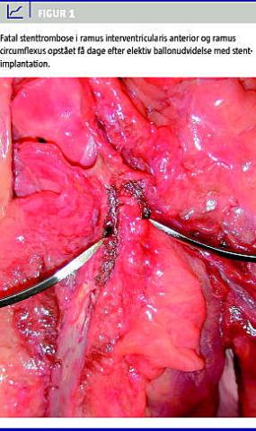 Koronare stents er intrakoronare fremmedlegemer, og de er derfor som udgangspunkt trombogene (Figur 1 ). Med henblik på at reducere forekomsten af stenttrombose anbefales dobbelt pladehæmmerbehandling med acetylsalicylsyre (ASA) livslangt og CLO (ofte i op til 12 måneder) efter PCI [1]. Samtidig behandling med PPI anbefales til patienter med øget risiko for øvre gastrointestinal blødning [2].