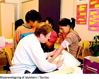 I samråd med det Nationale Grønlandske TB-råd iværksattes i 2005 en undersøgelse til belysning af TB-smittebyrden ved stikprøveundersøgelser af grønlandske skolebørn i en række byer og bygder fordelt over kysten. I alt blev 2.200 børn i alderen 6-18 år, svarende til ca. 10% af alle børn i landet, undersøgt for tegn på latent TB-infektion. Undersøgelsen blev foretaget med klassisk tuberkulintestning med Mantoux-teknik og med en nyere blodprøvebaseret γ-interferontest (Quantiferon In-tube), hvorved der specifikt kan skelnes mellem TB-infektion og BCG-vaccinationsrespons [2], en spørgeskemaundersøgelse og en ernæringsscreening. Antallet af smittede børn er et udtryk for niveauet af aktiv TB-transmission, idet der for hvert smittet barn findes en person i dets omgangskreds med evt. udiagnosticeret smitsom lunge-TB. Overordnet var 10% af børnene smittede, 6% ved 5-6-års-alderen og 14% ved 16-18-års-alderen. Smittebyrden var ikke lige stor overalt: I enkelte byer var 19% af børnene smittede, og 8% af dem var allerede smittede ved skolestart, mens der i visse mindre bygder slet ikke fandtes smittede børn.