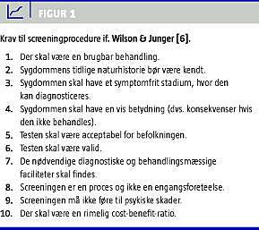 Ved en screeningsprocedure skal der være evidens for, at der opnås en overlevelsesgevinst. En sygdom er egnet til screening, hvis den opfylder visse krav (Figur 1 ).