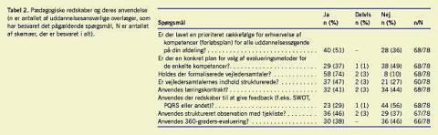 Graden af anvendelse af pædagogiske redskaber fremgår af Tabel 2 .