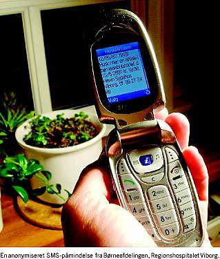 På Børneafdelingen, Regionshospitalet Viborg fortsættes implementeringen af SMS-påmindelser i ambulatoriets drift. Programmet »Aftalehuskeren« forventes videreudviklet, således at SMS-påmindelsen knyttes direkte til bookingsystemet. Patienternes mobiltelefonnumre registreres nu fortløbende ved kontakt til ambulatoriet. Udsendelse af SMS-påmindelser forventes sammenkoblet med det landsdækkende NemSMS, når dette system er klar til brug [7].