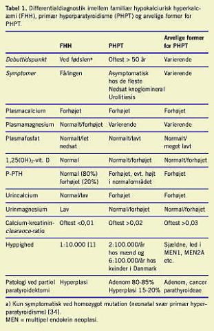 De aktiverende mutationer i CaSR medfører i heterozygote tilfælde FHH, som er autosomal dominant arvelig og har en prævalens på 1 pr. 10.000 [1] (Tabel 1 ).
