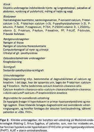 Hyperkalcæmien diagnosticeres oftest tilfældigt - enten ved undersøgelser i forbindelse med uspecifikke klager eller ved udredning af f.eks. træthed, tørst, øgede diureser eller muskelsmerter. Ved klinisk mistanke udredes patienten sædvanligvis som ved PHPT (Figur 2 ).