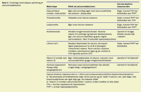 FHH kan ikke behandles kausalt, og der er specielt ikke indikation for paratyroidektomi. Det er imidlertid væsentligt at gennemgå den medicin, som patienterne får, idet ganske mange medikamina påvirker calciummetabolismen (Tabel 2 ).