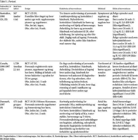 - Ladegaard MB, Stage V. Håndhygiejne og småbørnssygelighed i daginstitutioner. En interventionsundersøgelse. Ugeskr Læger 1999; 161: 4396-400.