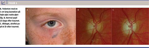 Man valgte konservativ behandling, og i månederne efter traumet var der fortsat højresidig RAPD, minus lyssans og ved oftalmoskopi en højresidig atrofisk, bleg papil (Figur 1C).