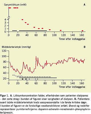 Patienten i nærværende sygehistorie indtog 800 mmol lithiumcarbonat i suicidalt øjemed (normal terapeutisk døgndosis er 24 mmol), og udviklingen af refraktært vasodilatorisk shock samt det langvarige dialysebehov vidner om forgiftningens sværhedsgrad.