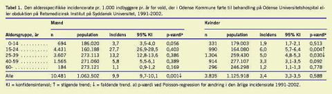 Et tidligere studie fra Odense viste et signifikant fald i incidensraten for vold fra 8,4 til 5,7 pr. 1.000 indbyggere pr. år i perioden 1988-1996 [7]. Vores studie har vist, at denne udvikling er stoppet. I et lignende studie af vold i Århus faldt den samlede incidensrate fra 6,5 til 4,6 pr. 1.000 indbyggere pr. år i perioden 1981-2000 [4].