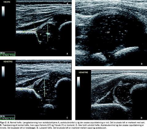 I 1998 indførtes selektiv ultralydscreening på Hvidovre Hospital og senere på Gentofte Hospital med det formål at sænke frekvensen af skinnebehandling og forkorte behandlingstiden, uden at dette skulle føre til en øget incidens af sent opdagede tilfælde af hoftedysplasi. Formålet med denne artikel er at beskrive og vurdere den anvendte screeningsprocedure.