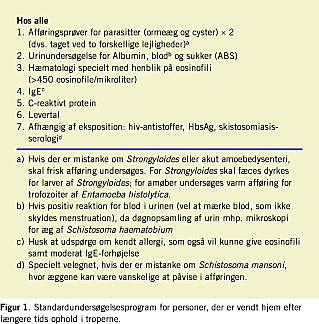 I Figur 1 er der angivet et forslag til et standardscreeningsprogram for hjemvendte fra troperne.