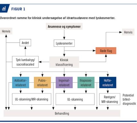 Lyskesmerter er et hyppigt problem hos idrætsudøvere, især inden for idrætsgrene som fodbold og ishockey [1]. Der har i mange år manglet konsensus om terminologi og diagnostik af lyskeskader i idrætsmedicinen [2]. I løbet af det seneste årti har der imidlertid været et øget fokus med intensiveret forskning og flere konsensuskonferencer på området. Disse har bidraget til væsentlige fremskridt inden for den kliniske og parakliniske undersøgelse og behandling af idrætsudøvere med lyskesmerter [2-5]. Formålet med denne artikel er at give et overblik over, hvordan idrætsudøvere med lyskesmerter bør undersøges, klassificeres og behandles med den viden, vi har i dag.