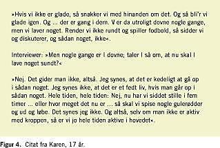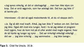 Materiale og metoder: En kvalitativ interviewundersøgelse af seks 10. klasses piger blev gennemført med teoretisk udgangspunkt i kritisk psykologi.