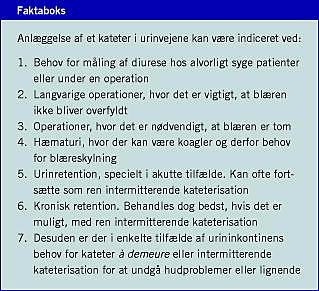 Summary Urinary tract infections: Ugeskr Læger 2007;169(49):4265-4268 Urinary tract infections are frequently a result of insufficient urinary drainage. Abnormalities of the urinary tract, bladder and/or urethral dysfunction and bad voiding habits often lead to poor bladder emptying. Foreign bodies in the urinary tract increase the risk of urinary tract infections. In hospitals the primary risk factor is instrumentation of the urinary tract mainly by catheterisation. It is important to diagnose the causes of possible insufficient drainage. The use of catheterisation should be clearly indicated and documented in the patient's medical records.