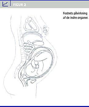 Mens der ved et øget progesteronniveau, der opnås ved at nedsætte detrusortonus, er en tendens til at blærekapaciteten øges, er der ved et øget intraabdominalt tryk fra en voksende uterus en tendens til at blærekapaciteten nedsættes (Figur 2 ). Hvordan disse modsatrettede kræfter påvirker blærekapaciteten netto, er uafklaret. Resultaterne af urodynamiske undersøgelser og dyreforsøg er således ikke entydige mht. størrelsen af blærekapaciteten under en graviditet [11-14]. Derimod har vi god evidens for, at antallet af vandladninger pr. døgn øges under en graviditet. Blandt andet har man i en undersøgel se påvist, at mere end fire ud af fem gravide har over syv vandladninger om dagen og mindst en vandladning om natten, og at frekvensen tiltager med tiltagende gestationsalder [11]. Dette forhold skyldes formentlig en nedsat urinmængde pr. vandladning og en marginalt øget døgndiurese [15, 16]. En fysiologisk reduktion af det antidiuretiske hormon og mobilisering af deklive ødemer bidrager desuden til specifikt at øge antallet af natlige vandladninger.