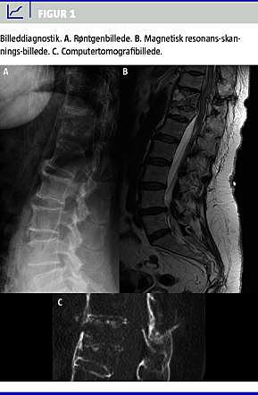 En 59-årig kvinde med paranoid skizofreni blev henvist til skadestuen, fordi hun fire dage tidligere var faldet og havde slået ryggen. Den kliniske undersøgelse viste let direkte, men ingen indirekte ømhed af columna. Sensorium og motorik var intakt. Et røntgenbillede gav ikke umiddelbart mistanke om fraktur (Figur 1 ), og patienten blev derfor overflyttet til psykiatrisk afdeling, hvorfra hun hurtigt blev udskrevet. På røntgenkonferencen dagen efter opdagede man en mindre kompressionsfraktur af Th12. Man forsøgte uden held at ringe til patienten og endte med at måtte sende et brev, hvori man beskrev fundet og anbefalede patienten at søge egen læge ved forværring eller manglende bedring.