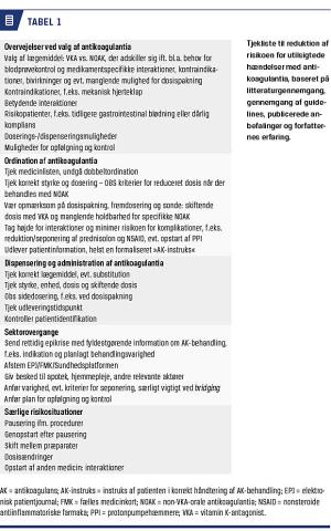 For patienter med atrieflimren er det påvist, at struktureret opfølgning både øger andelen af patienter, der er i korrekt behandling [25], og forbedrer prognosen [23]. I Tabel 1 gives en oversigt over trin i AK-behandling, der kræver opmærksomhed for at forebygge UTH.