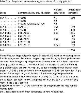 Korrespondance: Arne Svejgaard, Vævstypelaboratoriet, Klinisk Immunologisk Afdeling 7631, H:S Rigshospitalet, DK-2100 København. Ø.E-mail: arnesvej@post4.tele.dk