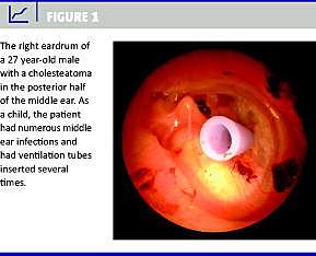 Sygdommen kolesteatom (Figur 1 ) kan forårsage alvorlige komplikationer såsom høretab, facialisparese, svimmelhed og intrakranielle infektioner. Et kolesteatom skal derfor behandles med minutiøs kirurgisk sanering.