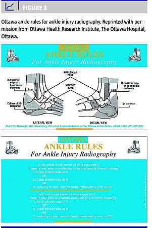 Skader mod ankel og mellemfod er meget almindelige skader i skadestuer. De fleste, som får foretaget røntgen, har ingen fraktur. Dette er dyrt og tidskrævende samtidig med, at patienter udsættes for unødig stråling. For at reducere antallet af unødvendige røntgenbilleder udviklede Stiell et al et sæt kliniske retningslinjer, som kaldes Ottawa ankle rules (OAR), Figur 1 . OAR er testet i flere kliniske sammenhænge. De fleste rapporterer om en reduktion i brugen af røntgen og en sensitivitet på nær 100%. Lucchesi et al og Kelly et al fandt dog en sensitivitet på henholdsvis 94,6% og 93%, hvilket må anses for at være uacceptabelt. Implementeringen af OAR i Danmark er aldrig blevet valideret. En validering af reglerne i en dansk kontekst er nødvendig, før en generel anbefaling af reglerne i Danmark kan foretages.
