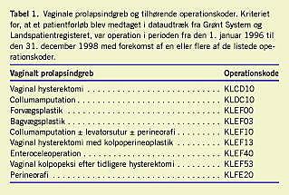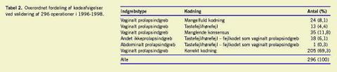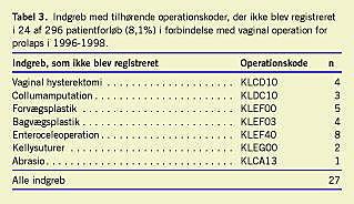 Materiale og metoder: Der blev foretaget en sammenligning af GS- og LPR-dataudtræk vedrørende vaginal prolapskirurgi i 1996-1998 ved en gennemgang af 296 operationsbeskrivelser og epikriser.