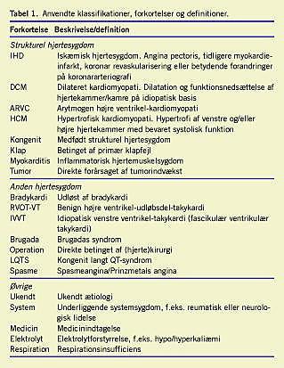 Materiale og metoder: Studiet er en retrospektiv gennemgang af oplysninger om 993 patienter, der blev udskrevet fra Rigshospitalet med diagnosekoderne ventrikulær takykardi, ventrikelflimren eller ventrikulær ekstrasystoli inden for en periode på seks år og fem måneder.