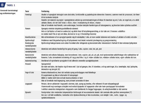 På landsplan ses en stigning i antallet af børn og unge, som bliver henvist til udredning for VD og OD, som er neurologisk betingede forstyrrelser, der giver besvær med organisering, planlægning og udførelse af viljestyrede bevægelser. Korrekt diagnosticering af lidelserne er vigtig, idet prognose og behandling adskiller sig fra prognose og behandling af andre typer tale- og oralmotoriske vanskeligheder. Tidlig intervention anbefales for at give barnet de bedste udviklingsbetingelser. I fremtidig prospektiv forskning bør man fokusere på OD og effekten af VD-undervisningsmetoder.