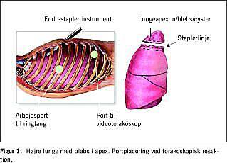 Ved recidiv efter torakoskopisk resektion og pleurodese udføres partiel apikal pleurektomi torakoskopisk med samme portadgang.