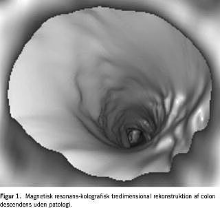 Virtuel koloskopi er en samlebetegnelse for hhv. computer-tomografisk (CT) - og magnetisk resonans (MR)-baseret colonundersøgelse til påvisning af kolorektale polypper og cancer. Virtuel refererer til en post-processing-procedure, hvorved der dannes tredimensionelle billeder af colons indre - en computerskabt kunstig koloskopi (Figur 1 og Figur 2 ). CT hhv. MR-kolografi (CTK og MRK) er mere passende betegnelser, idet undersøgelserne alene er diagnostiske og i modsætning til den gængse opfattelse af virtuel teknologi kan de udføres med beskedent brug af tredimensional rekonstruktion. Begge undersøgelser udføres som hovedregel efter forudgående tarmudtømning og efter indførelse af hhv. luft eller gadoliniumopløsning i colon.