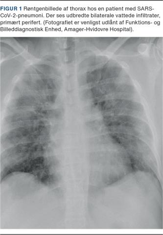 De senest introducerede CoV: SARS-CoV-1 fra 2003, MERS fra 2012 og SARS-CoV-2 har en høj aldersafhængig dødelighed. Alle tre menes at være zoonoser, som via mutation og menneskekontakt er blevet humant patogene. For SARS-CoV-1 er den samlede dødelighed omkring 15% [8] og for MERS omkring 34% [9]. For den ubehandlede SARS-CoV-2 er hospitalsdødeligheden 15-25% mens den samlede dødelighed i Danmark er < 1%, når der er justeret for alder og køn [10]. Typisk røntgenbillede af thorax af SARS-CoV-2 pneumoni med interstitielle infiltrater ses på Figur 1.