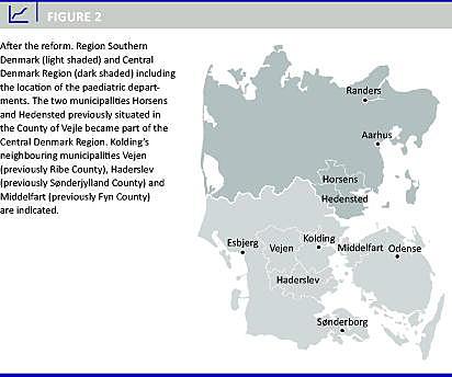 I 2007 blev de 13 amter lagt sammen til fem regioner. Hvis patienterne selv er i stand til at vurdere kvaliteten af behandlingen og kender deres ret til at vælge behandlingssted, ville man ikke forvente ændringer i patientfordelingen efter ændringer af de regionale strukturer. Det tidligere Vejle Amts børneafdeling ligger i Kolding nær grænsen til de tidligere Ribe, Sønderjyllands og Fyns Amter, som blev lagt sammen med den sydlige del af Vejle Amt til Region Syddanmark (RSD). Den nordlige del blev en del af Region Midtjylland (RM). Denne geografiske placering skabte basis for at studere, om strukturreformen satte sig spor i patienters brug af forskellige sygehusafdelinger.