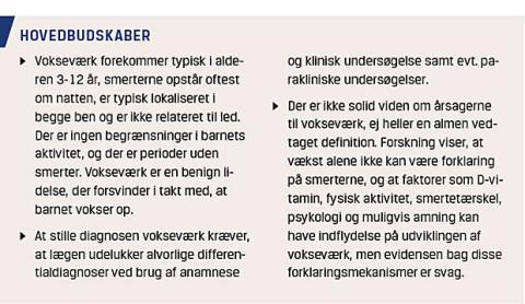 Vi har næsten alle erfaringer med vokseværk. Enten i form smerter hos små patienter eller fra deres bekymrede forældre, som forældre til børn eller måske endda i form af erindringer fra barndommen. Men vi har ikke meget faglig viden om vokseværk.